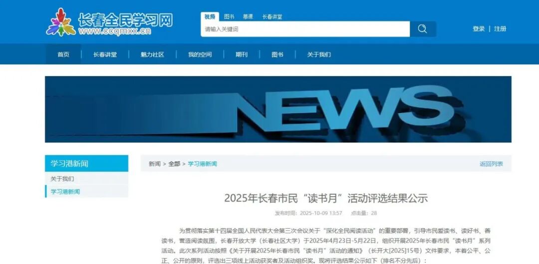 喜报|我校在2025年长春市民“读书月”活动中喜获多项荣誉