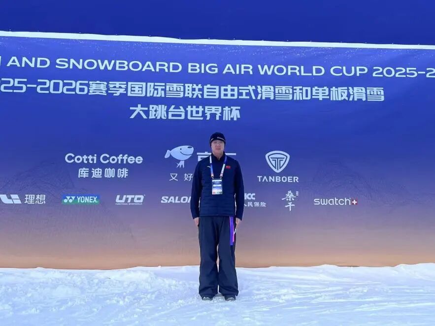 非常荣幸以裁判身份参与2025—2026赛季国际雪联单板和自由式滑雪大跳台世界杯云顶站这一世界级赛事。站上国际舞台的激动与感恩难以言表,而能够获得这次宝贵机会,离不开学校的信任与支持。备战期间,正是身后的师专力量,才使我能无后顾之忧的投入裁判研修与国际交流,我一定以严谨、公正的态度履行职责。
