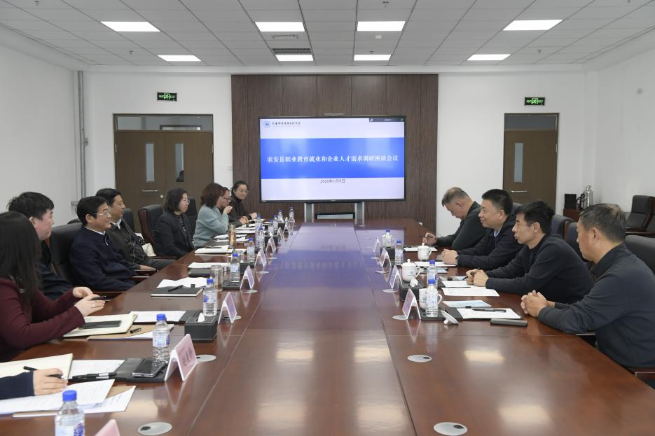 此次农安县职业教育就业和企业人才需求调研座谈会的召开,为学校第五调研组深入对接农安县域调研工作拉开了帷幕。座谈会上,学校各学院教学院长分别就学院的专业建设及人才培养情况进行了详细介绍。此外,农安县政协与开发区管委会一行领导实地参观了特殊教育学院及学前教育学院的特色实训室与中国职业教育博物馆,深入了解学校在专业建设与文化育人方面的成效。下午,第五调研组深入合隆经济开发区管委会对接行业现状和人才需求。